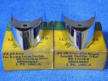 TWO FRONT BUMPER LOWER CENTER CHROME ORNAMENTS