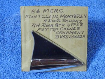 1956 Mercury Montclair Monterey Rear Quarter Upper Front Top Corner Chrome Ornament NOS