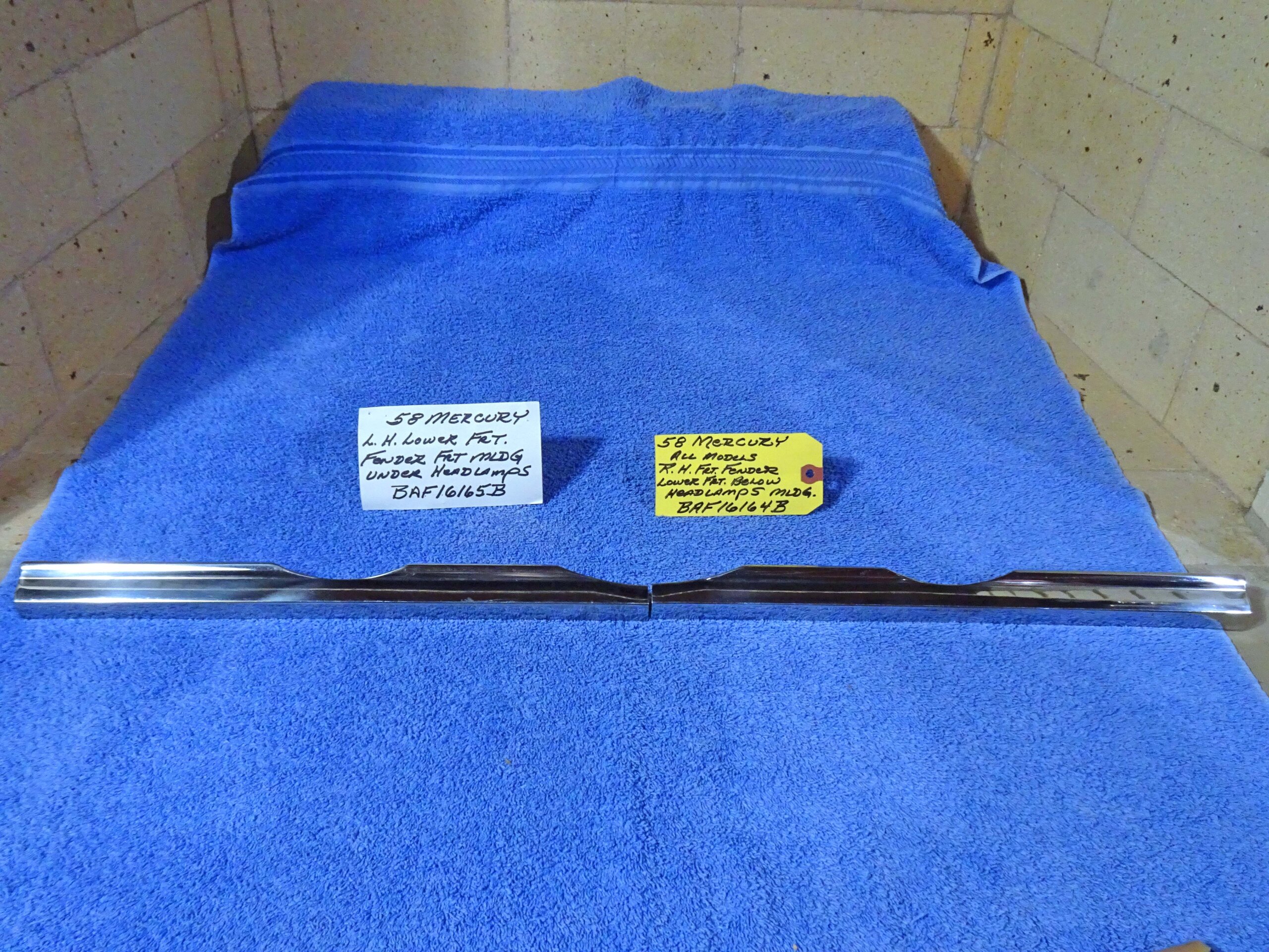 1958 Mercury Front Fender Below Headlamps Lower Chrome Mouldings NOS